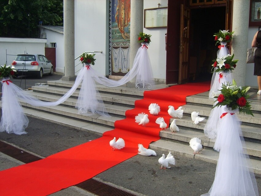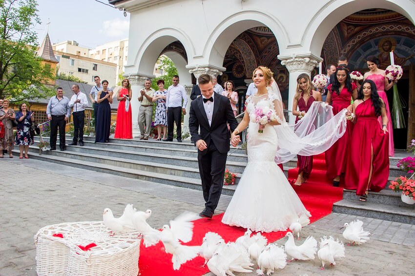 Intr-un decor de poveste, veti iesi din biserica Sot si Sotie, pe un covor rosu elegant si inconjurat de porumbeii albi pentru nunta. Cu siguranta toata lumea va fi impresionata.